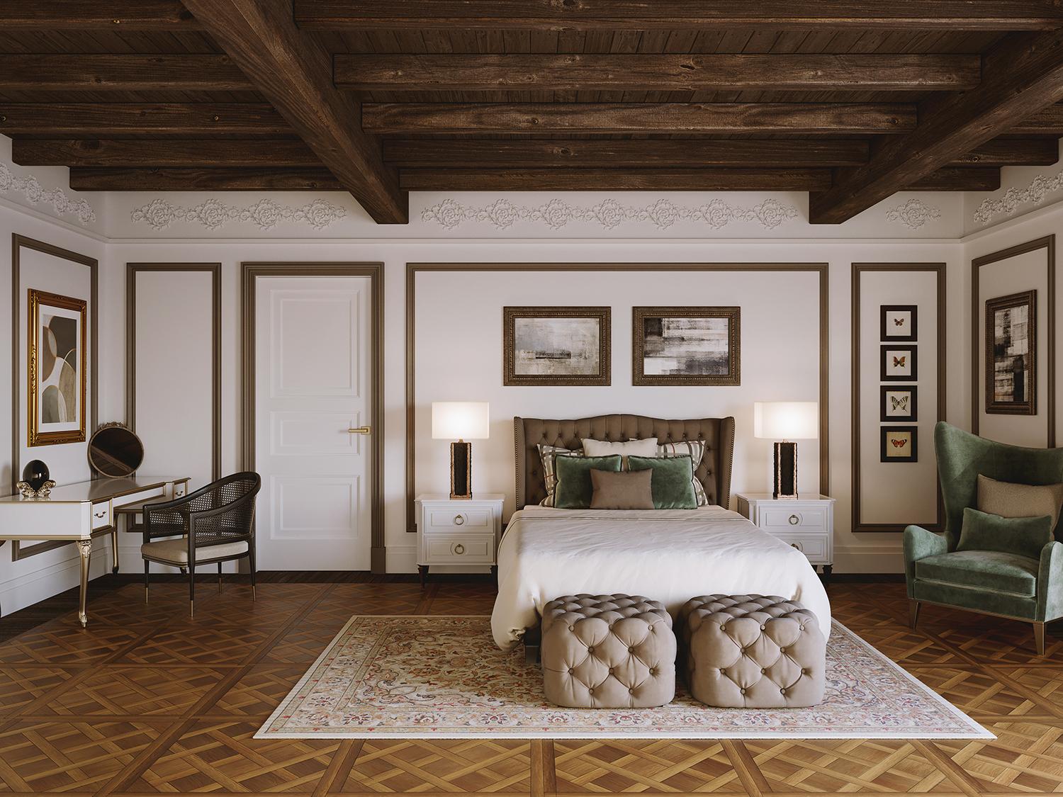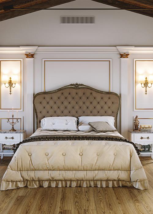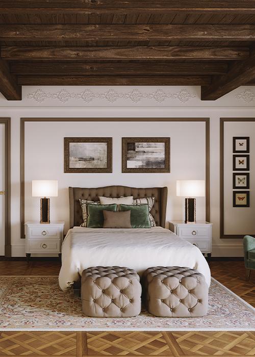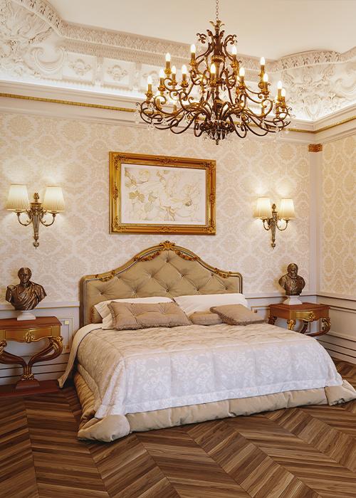 Le camere da letto Mantovani sono pensate come spazi di equilibrio, bellezza e intimità. Ogni elemento – dal letto alle armadiature, dai comodini alle boiserie – è realizzato su misura per rispondere alle esigenze funzionali e allo stile personale di chi le vive. L’uso di legni autentici, finiture naturali e dettagli curati a mano conferisce ad ogni stanza un’atmosfera calda e accogliente, in cui il design incontra la tradizione artigianale.